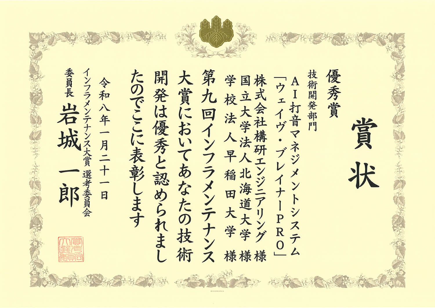 ■第9回「インフラメンテナンス大賞」 優秀賞